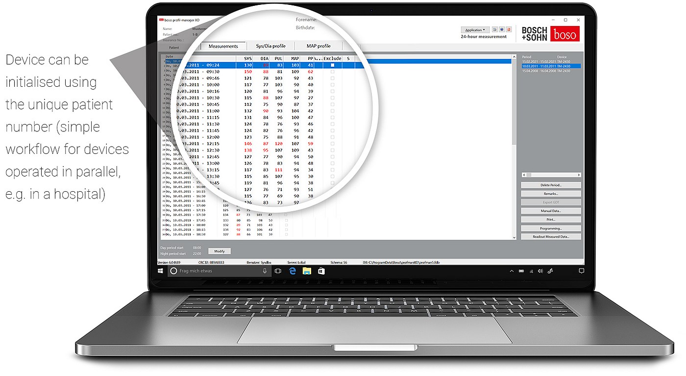 Do you need more specific data on your patient? Individualised interval times, start and end of day and night mode can be set clearly and conveniently on the PC using the boso profile manager XD software.